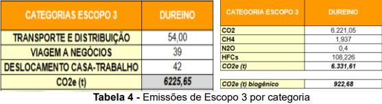 No Escopo 3 estão constadas as emissões que não são controladas pela organização. Em 2024, a Dureino contabilizou 6.331,61 tCO₂e nesse escopo,