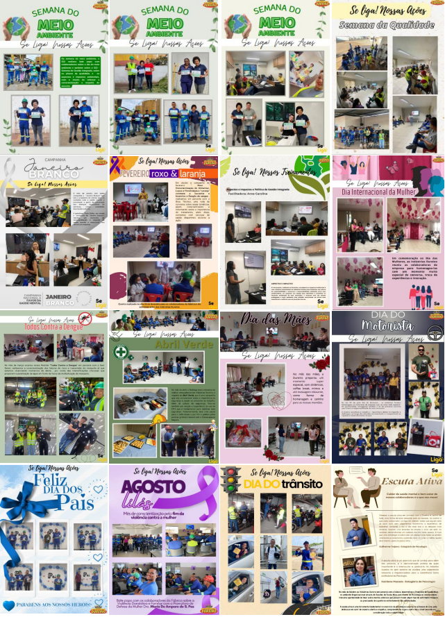Além das iniciativas ambientais, desenvolvemos campanhas e programas voltados à saúde, ao bem-estar e à valorização das pessoas, como as campanhas Janeiro Branco, fevereiro Roxo e Laranja, setembro Amarelo, agosto Lilás, outubro Rosa e abril Verde, além de ações de conscientização em saúde e segurança como Todos contra a Dengue, Dia do Trânsito e Escuta Ativa com psicólogos.