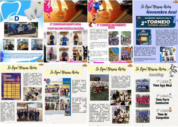 Reforçando nosso compromisso solidário, incentivamos a prática esportiva e a solidariedade por meio do Movimento Rosa, que alia corrida à arrecadação de alimentos para instituições sociais, e do Torneio de Futebol Society, onde, além da integração entre colaboradores, a doação de alimentos é revertida para comunidades em situação de vulnerabilidade. Também atuamos diretamente junto à comunidade por meio de iniciativas como o Workshop Projeto LPIDAR, fortalecendo a educação e a conscientização socioambiental.